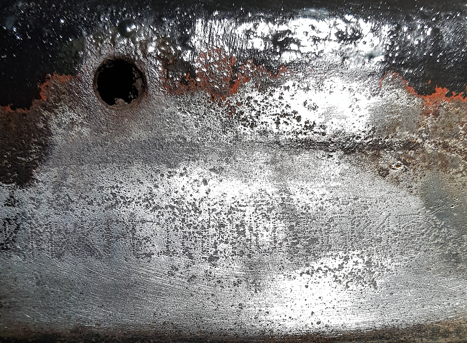 Kilka razy odtluszczylem miejsce gdzie powinien on się znajdować benzyna ekstrakcyjną za pomocą pędzla. Po odparowaniu benzyny nakladalem płyn do usuwania powłok lakierniczych, parokrotnie, za każdym nałożeniem po upływie około 30 minut traktowałem drucianą