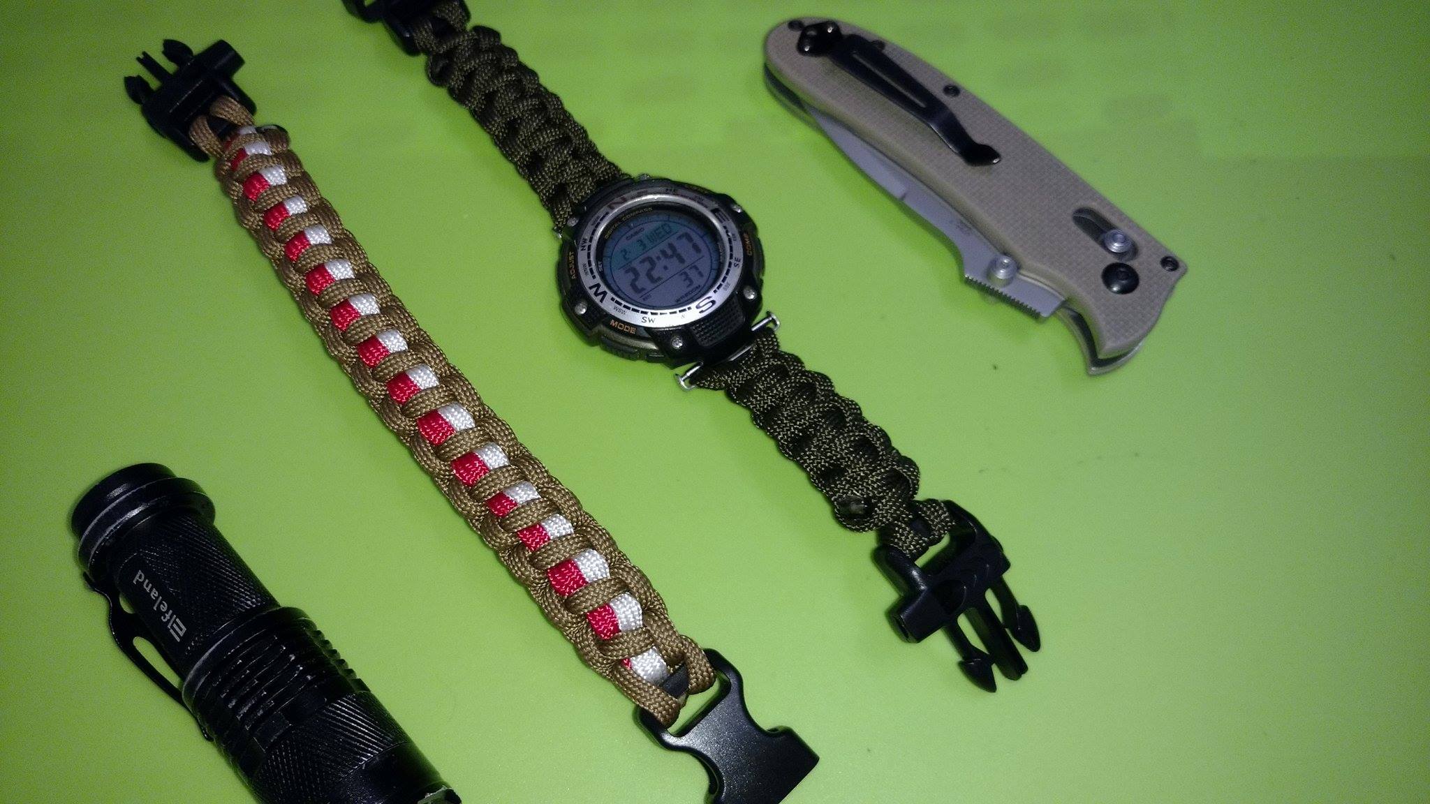 Dodatkowym walorem jest oczywiście estetyka. Podobnie jak o gustach o niej również nie powinno się dyskutować, jednak „nie ściszę… u siebie jestem:)!!!”. Paracord to bardzo ładna linka, ciekawy oplot, mnogość dostępnych kolorów sprawia, że staje się moim zdaniem atrakcyjnym i bardzo funkcjonalnym dodatkiem do naszego EDC. Dodatkowo, bransoleta z paracordu spełnia rolę atrybutu survivalowca, identyfikatora dzięki, któremu możemy rozpoznać, że mamy do czynienia z kimś o podobnych zainteresowaniach do naszych. Czasem fajnie przywitać się z osobą, z którą nawiążesz kontakt dzięki podobnym bransoletom. Jest to pewien znak rozpoznawczy środowiska, który moim zdaniem ułatwia nawiązywanie kontaktów. Więc zachęcam jeszcze raz do noszenia bransolet jako back-up, to na prawdę może się przydać.